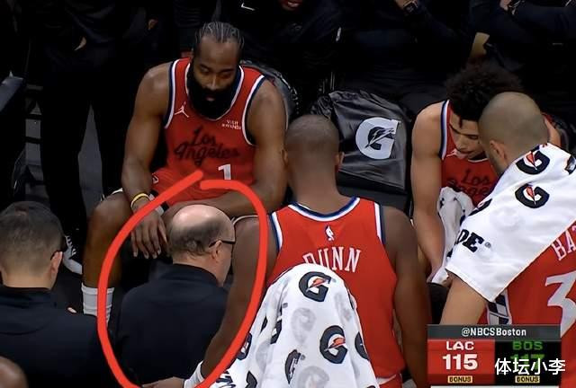 最后2秒钟,也就是说过去19秒哈登轰下9分,这个时候凯尔特人也是叫了最后的暂停。快船这边已经没有暂停,他们也是提前布置好最后一攻的战术安排,只不过主教练泰伦卢并没有拿起战术板,反而是助理教练范甘迪坐在球员面前,不断布置着。快船肯定是准备了2种方案,一种是凯尔特人两罚全中,另一种就是最后一罚故意不中。